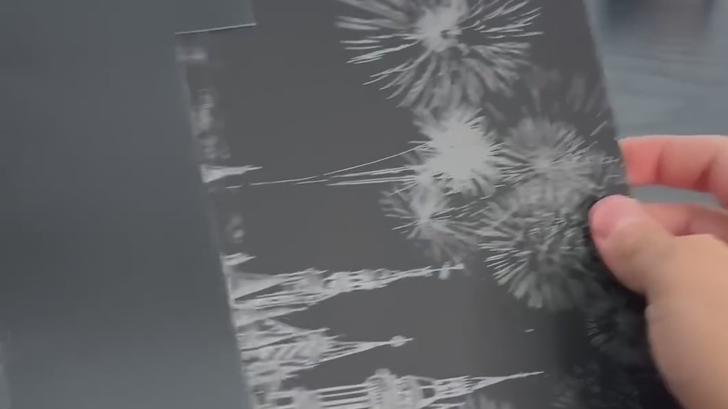 Grattez patiemment la couche grise pour révéler la magnifique œuvre d’art.